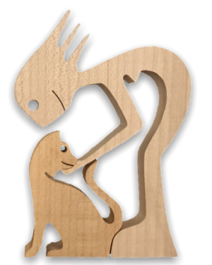 Stojící žena s kočkou. Kočka dobarvená voskem.