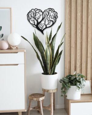 Strom života ve tvaru srdce, vyřezaný z 6 mm překližky, k zavěšení na zeď. Ošetřený akrylovým lakem černým. Na zeď je možno přilepit montážní oboustrannou páskou, kdykoliv lze lehce sundat ze zdi.