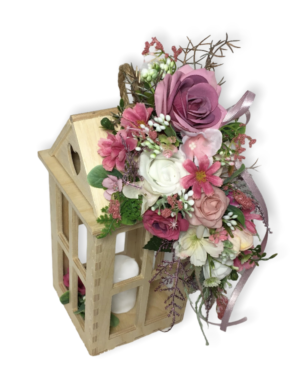 Květiny na dřevěné lucerně